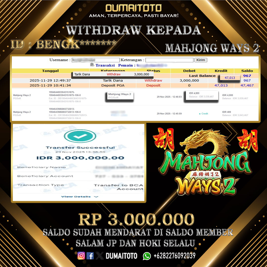 Withdraw Telah di Proses dan Saldo Sudah Mendarat Mulus di Rekening Anda !!! WD Berapapun di DUMAITOTO di Bayar LUNAS !!!