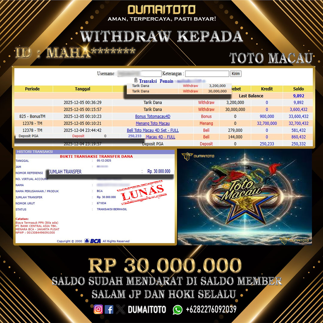 🎉Selamat Kepada Member Setia DUMAITOTO 🎉